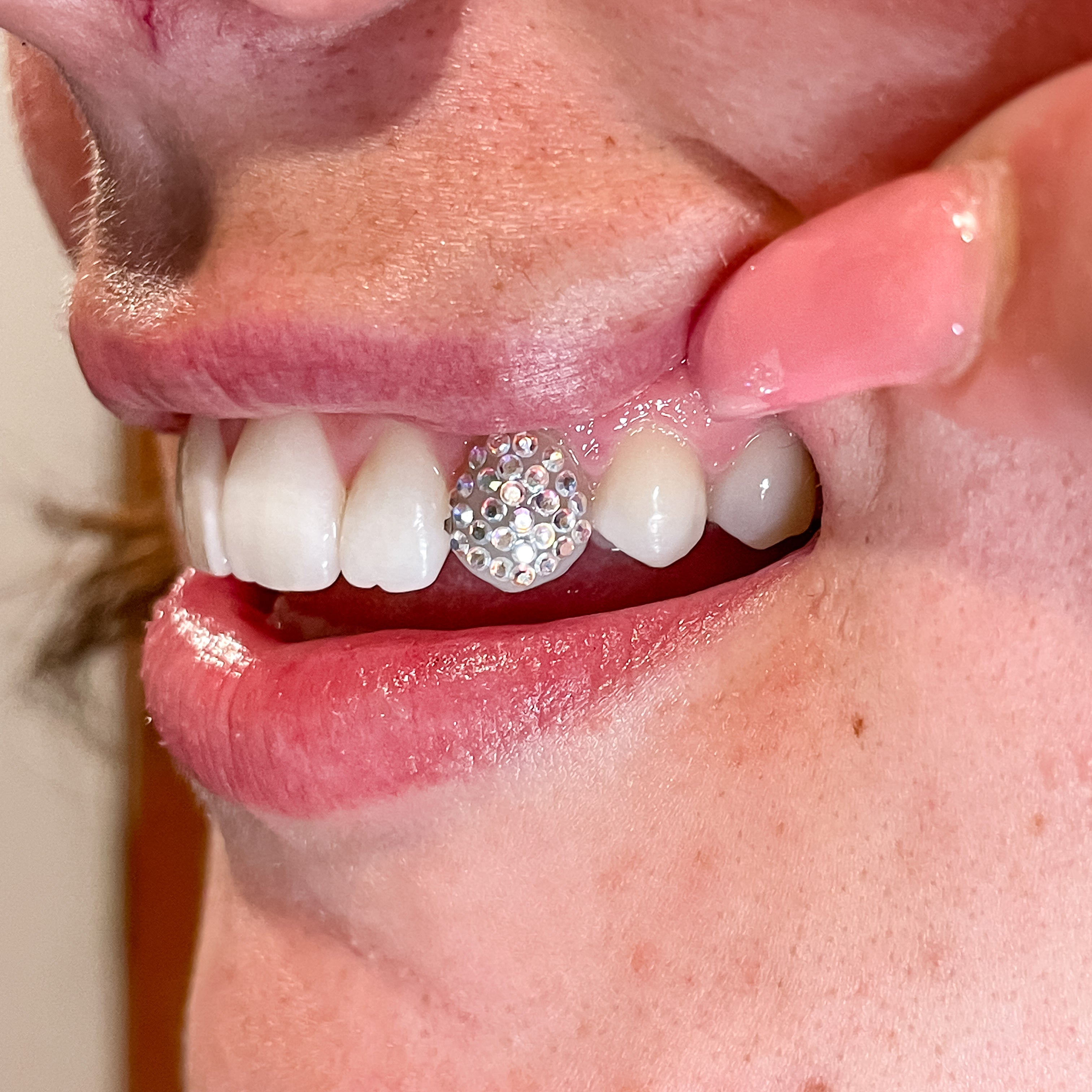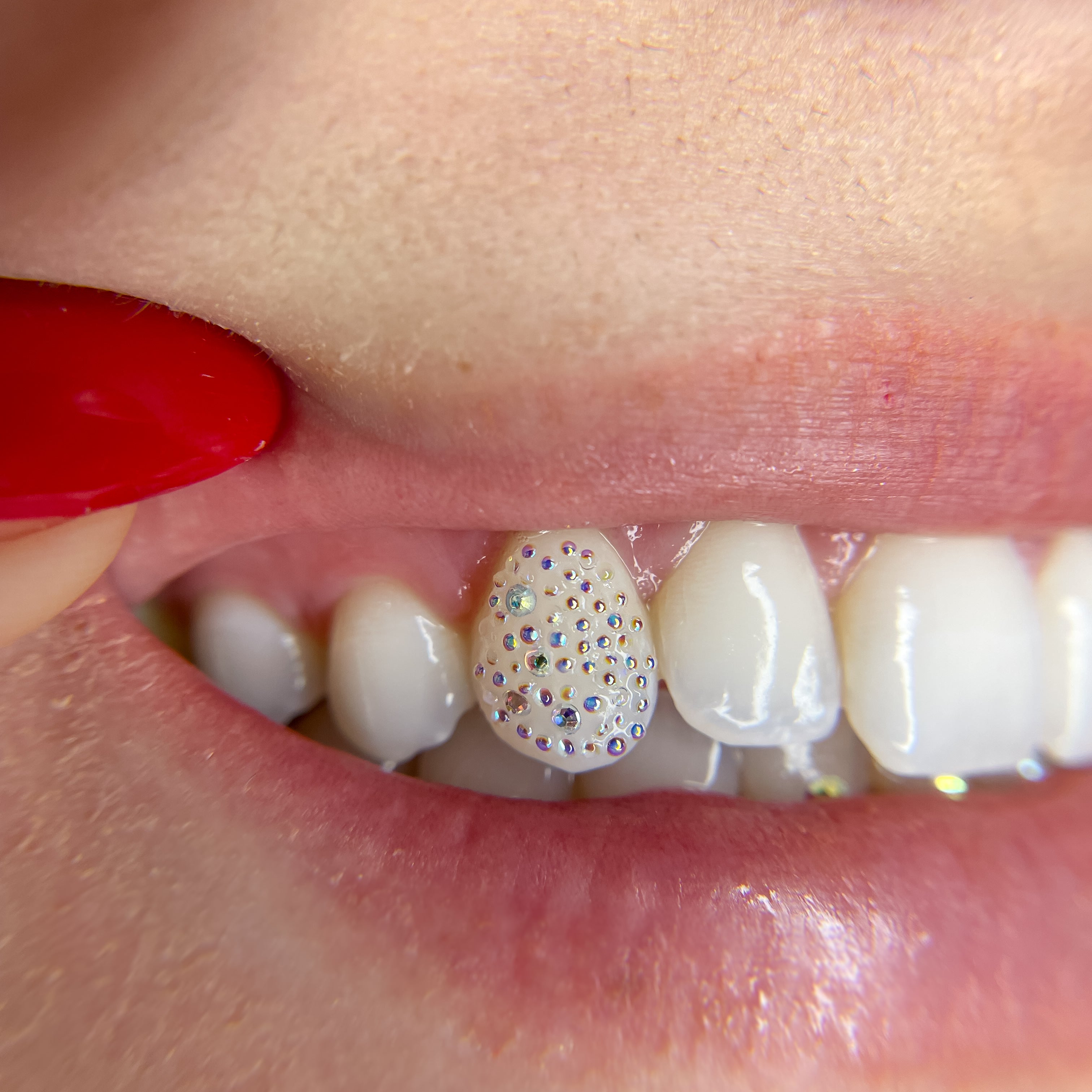 Our most intricate design, covering the entire tooth in extra small and micro crystals for an iridescent, glittering finish.