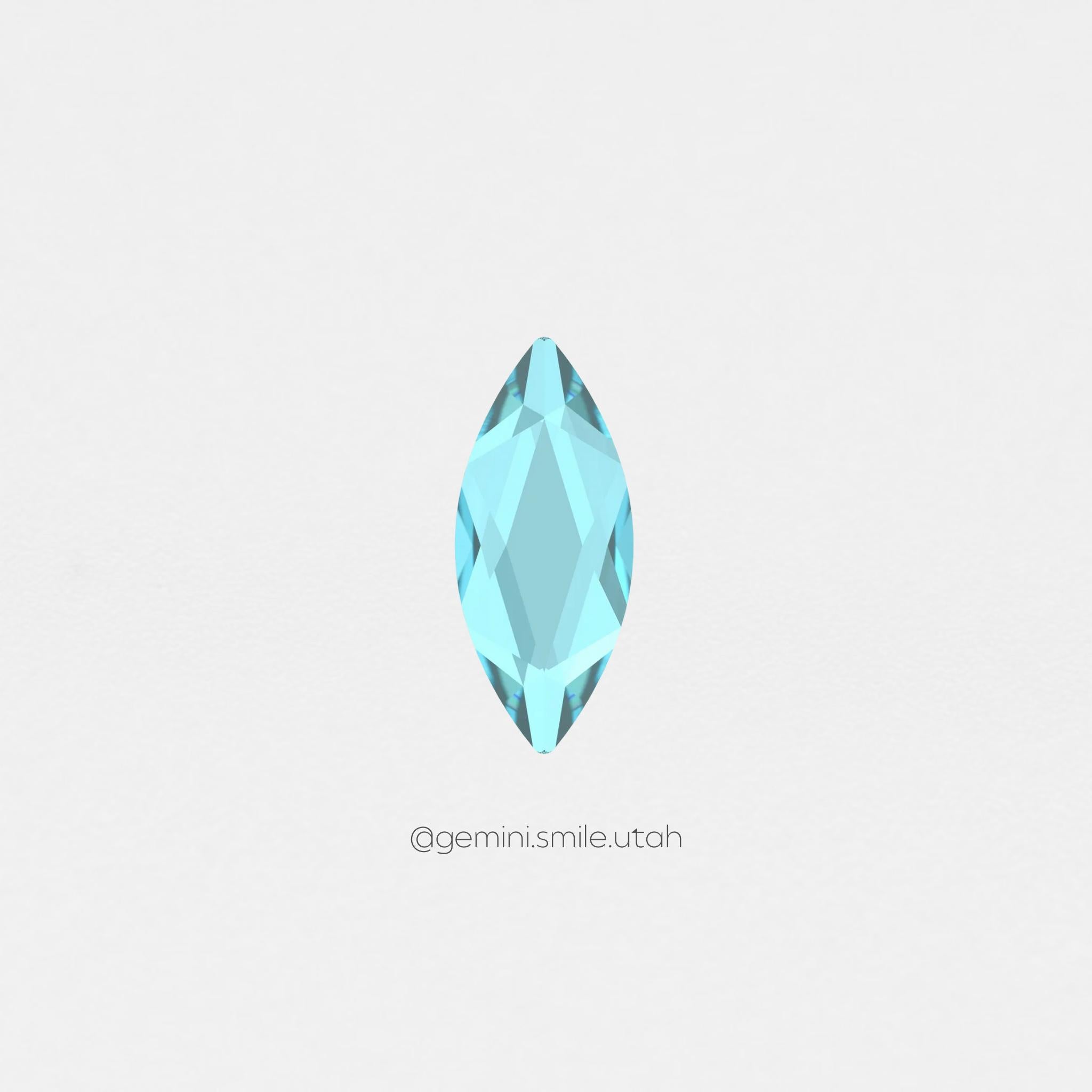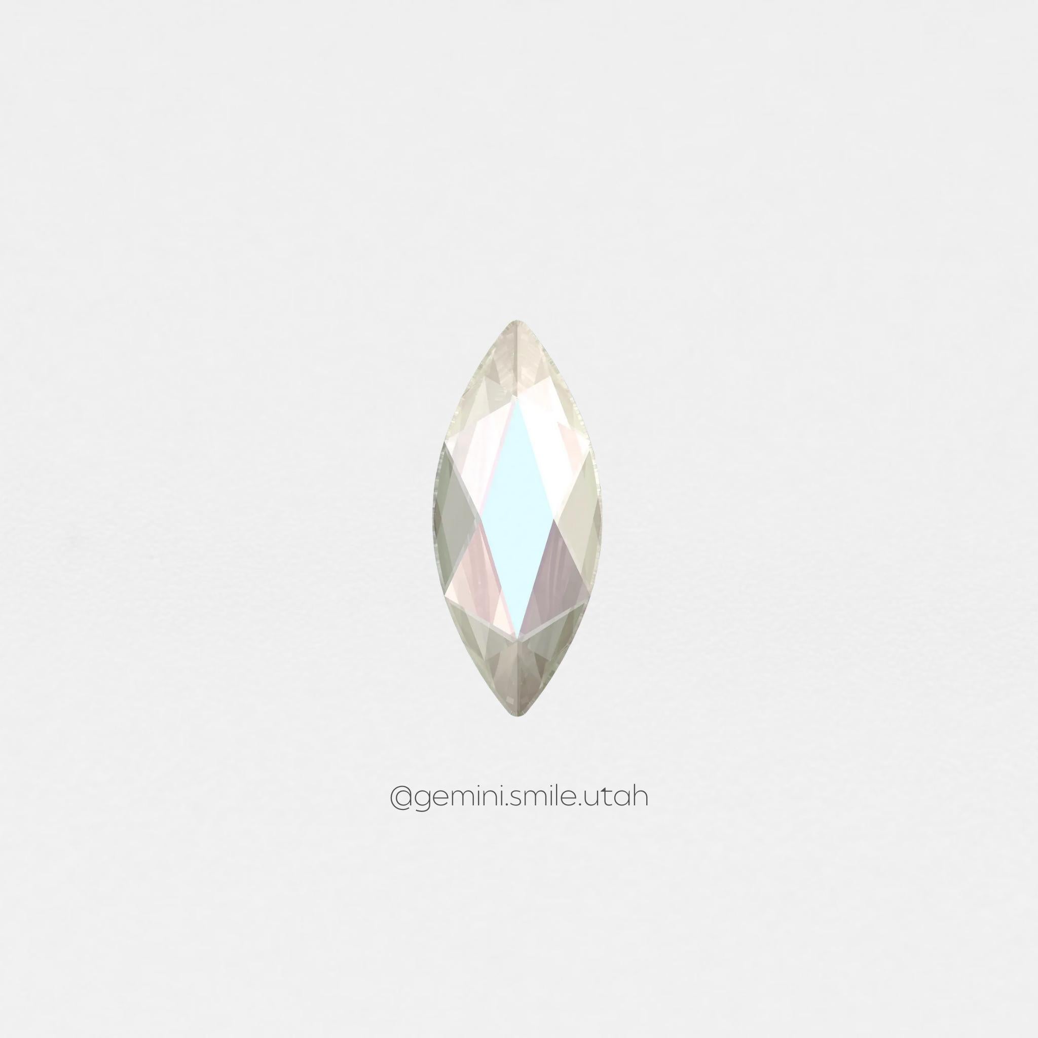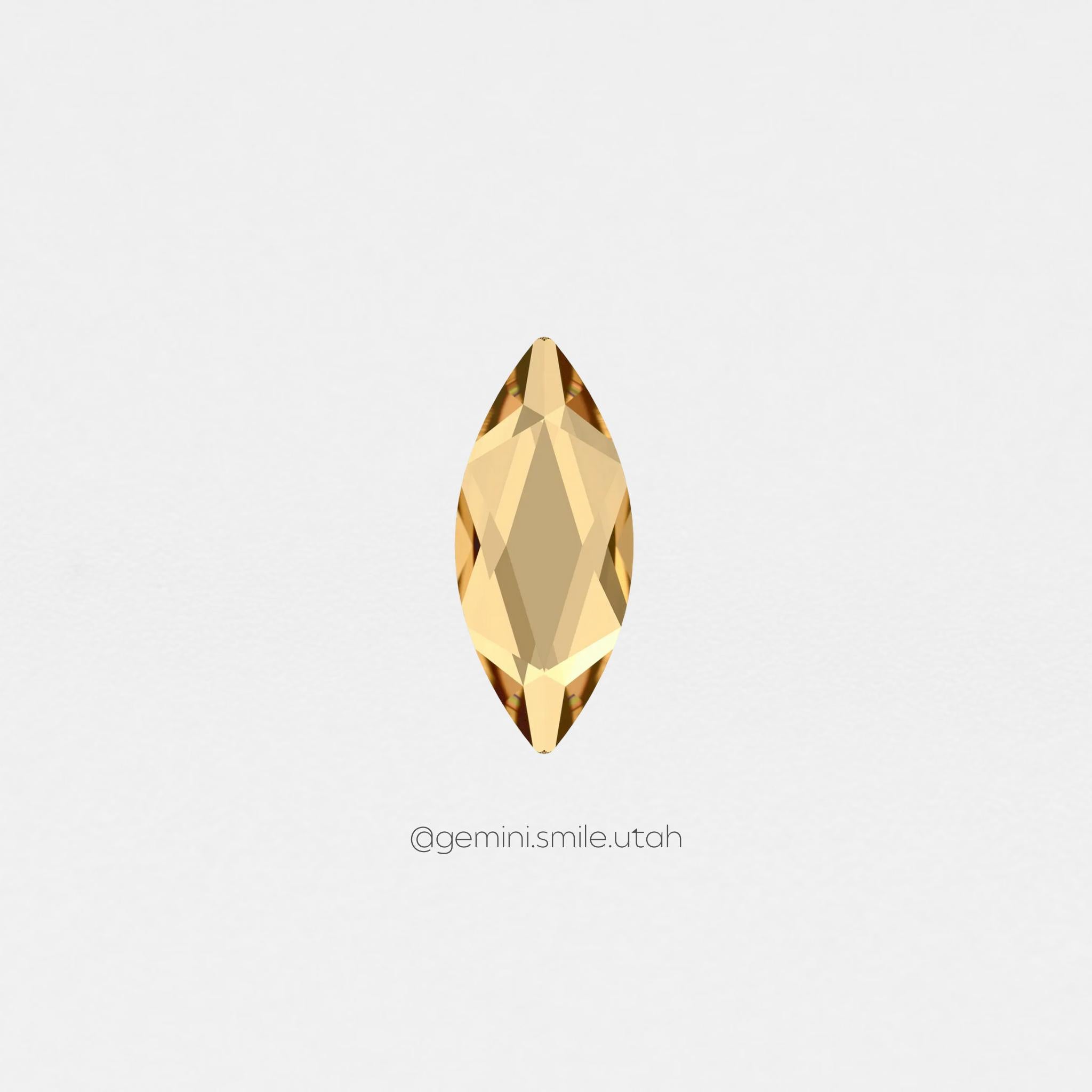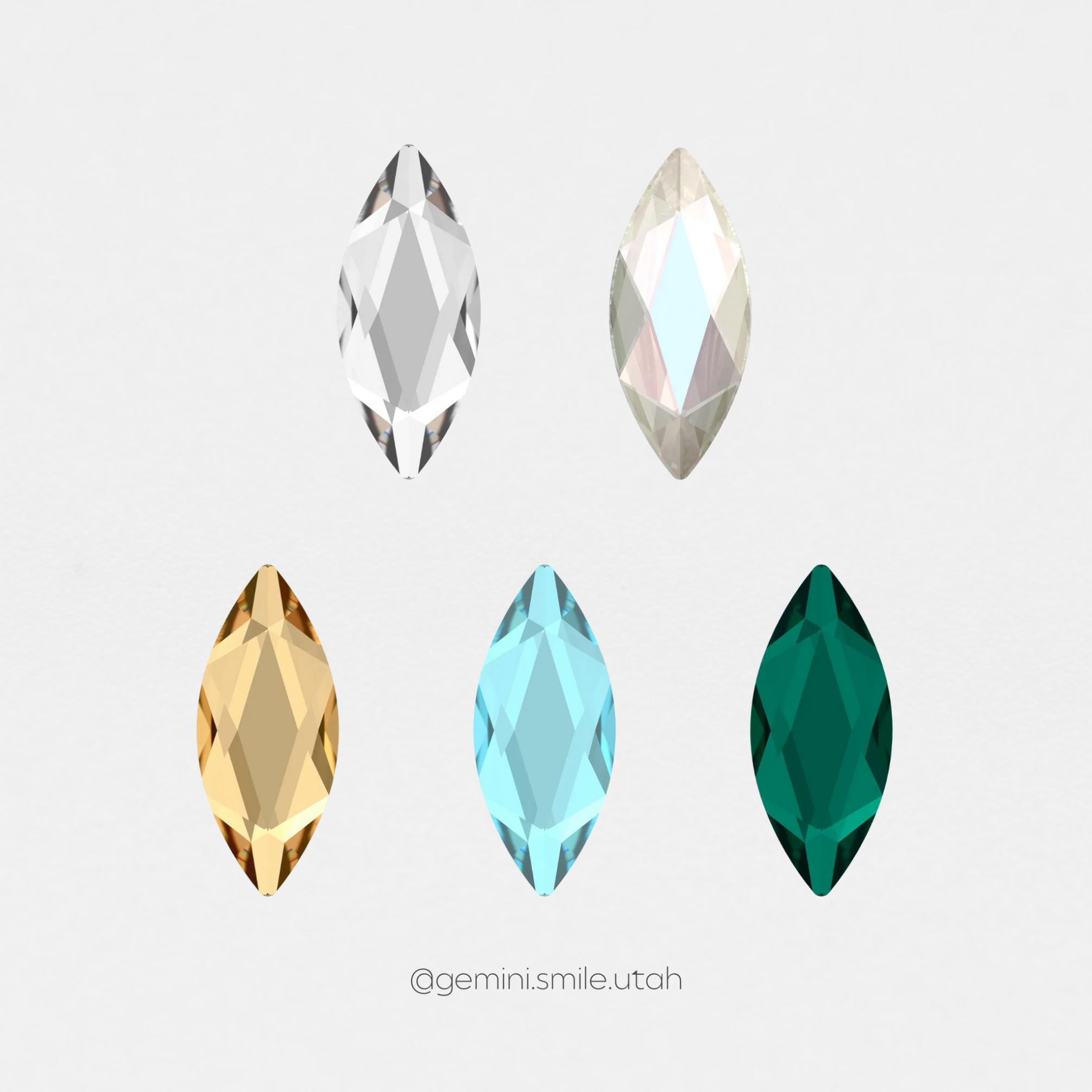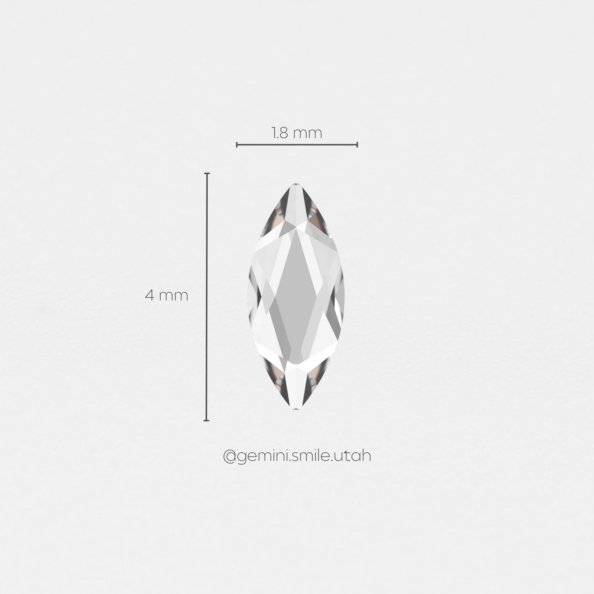 Marquise is very similar to the Navette, being the same height and 0.2 mm more narrow. Marquise can often give more sparkle than a Navette due to its unique facets. It makes a perfect wing for the butterfly design.