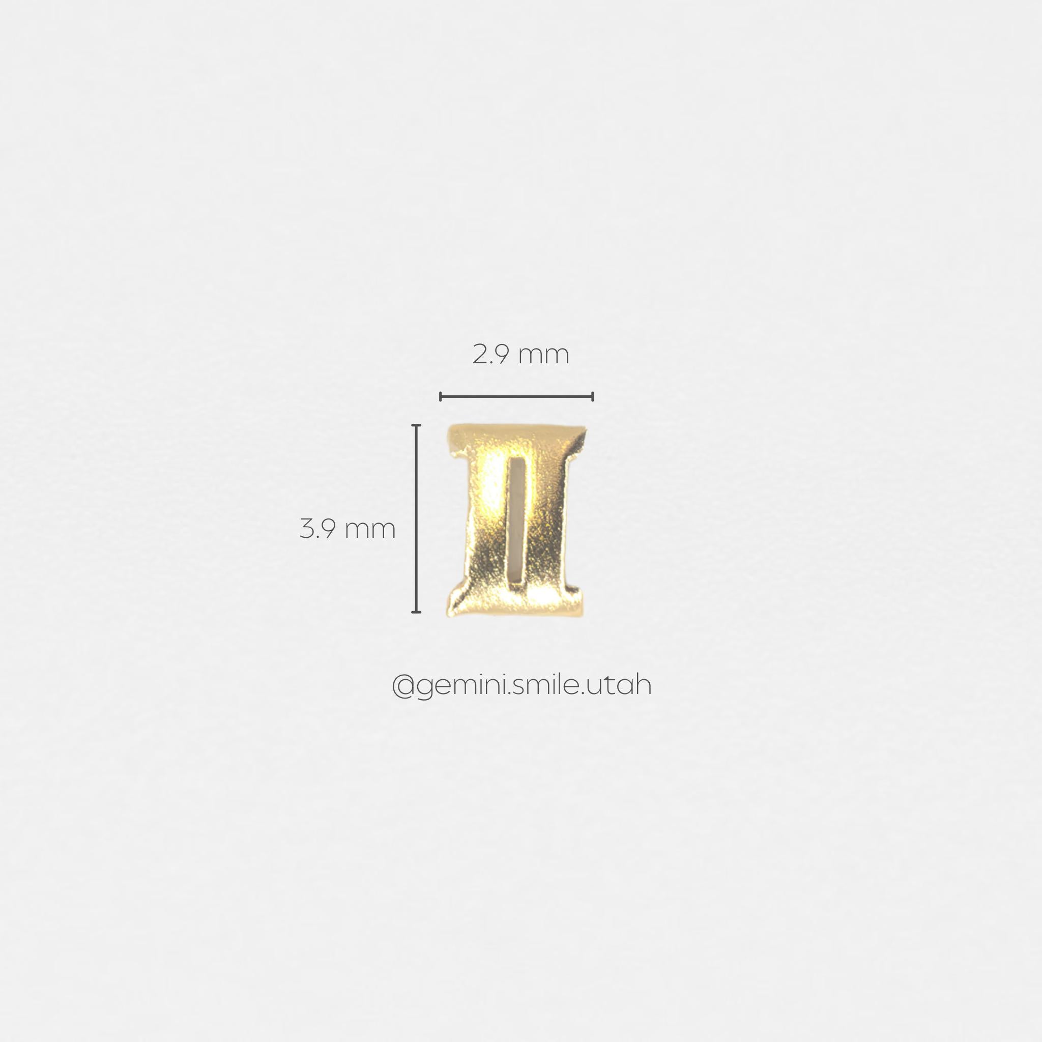 The Roman Numeral II (2) Gold Charm brings versatility and meaning to your designs. Available in white or yellow gold, it’s ideal for celebrating significant dates, partnerships, duality, or representing the Gemini zodiac sign. Add this unique way to personalize your clients' Tooth Gems to your offerings today!