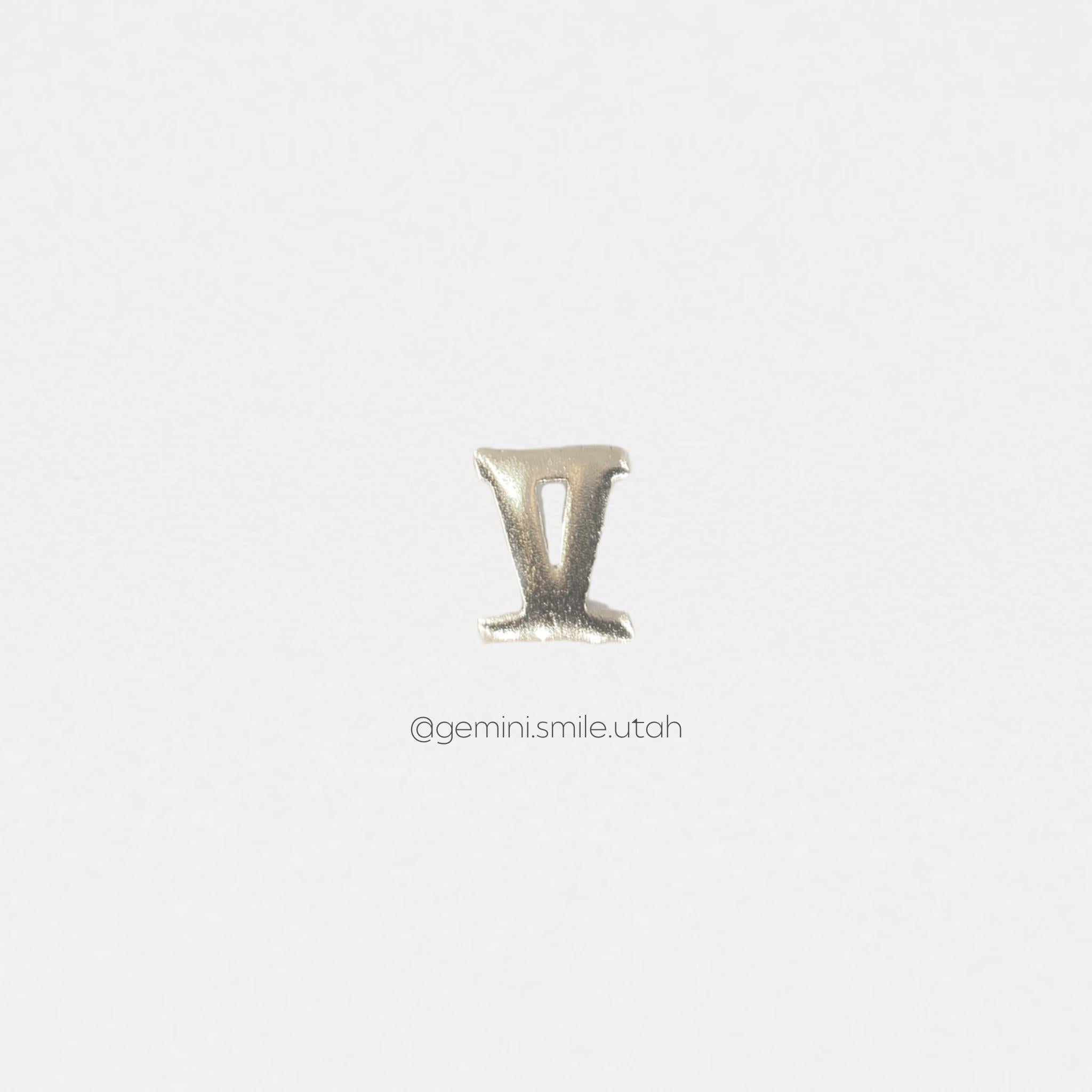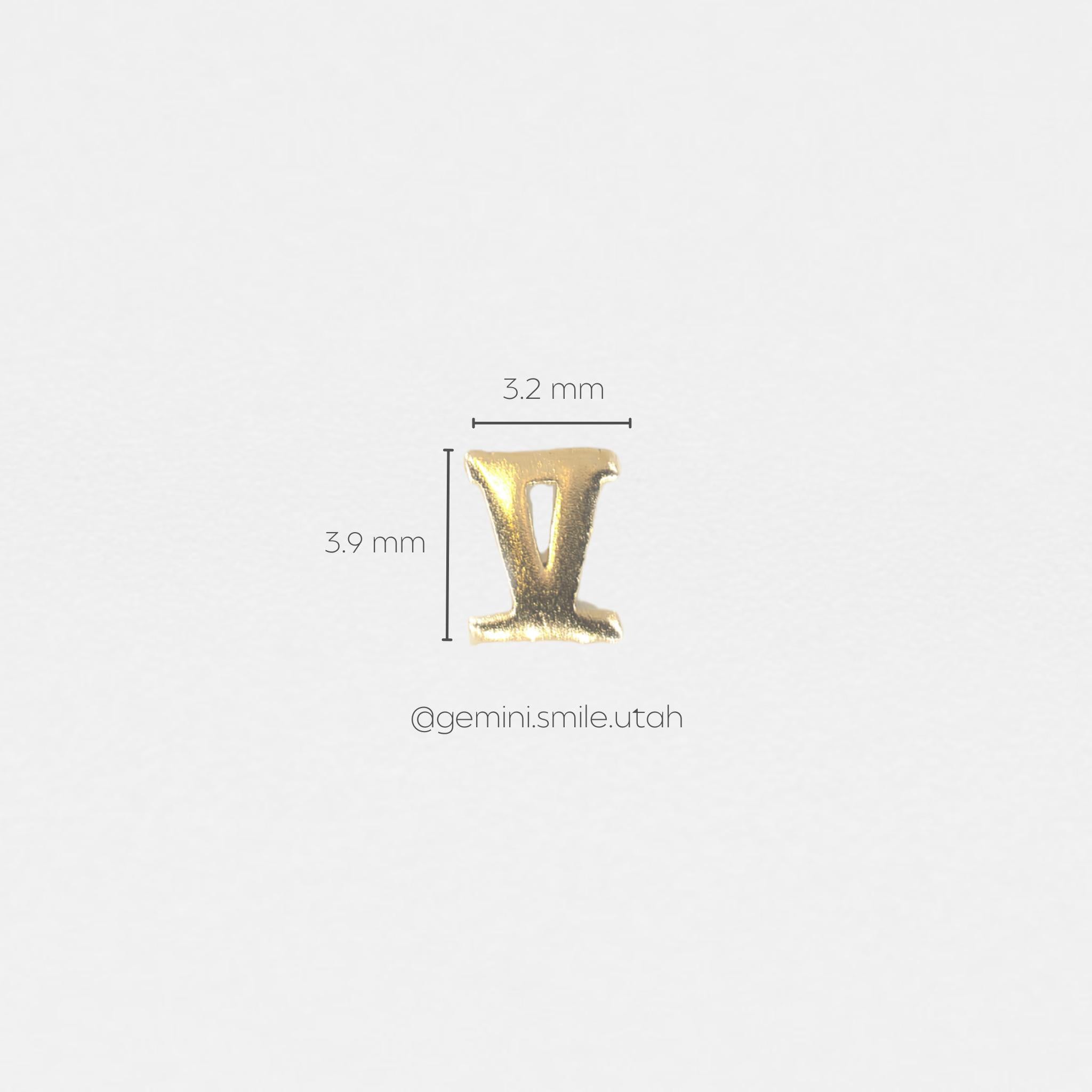 The Roman Numeral V (5) Gold Charm is a stylish way to add meaning to your designs. Often associated with adventure, change, or milestones, it’s perfect for clients celebrating life’s big moments. Available in white or yellow gold, it’s a standout piece for personalized Tooth Gem designs.